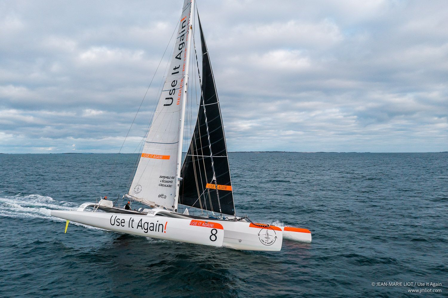 El trimaran “Use It Again!”, precursor de la clase Ultim, fue construido en 2003 para la Ellen Mac Arthur, con el consiguió el récord de la circunnavegación en solitario (hacia el Este) en 2005. Considerado obsoleto en 2011, fue abandonado en la Bretaña francesa y en 2016 fue rebautizado y reconstruido siguiendo los principios de reduce, reutiliza, recicla. Hoy convertido en un gran icono de la sostenibilidad, el barco y su tripulación promueven la protección de los océanos y pretenden demostrar el enorme potencial de la economía circular, batiendo el récord de la vuelta al mundo con un barco 100% reciclado y un mínimo impacto medioambiental.