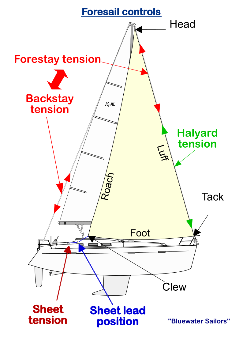 These control elements on which we can act on a headsail (genoa or jib) are: