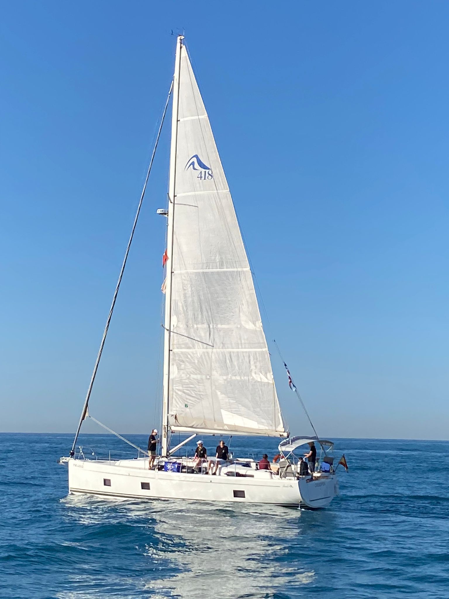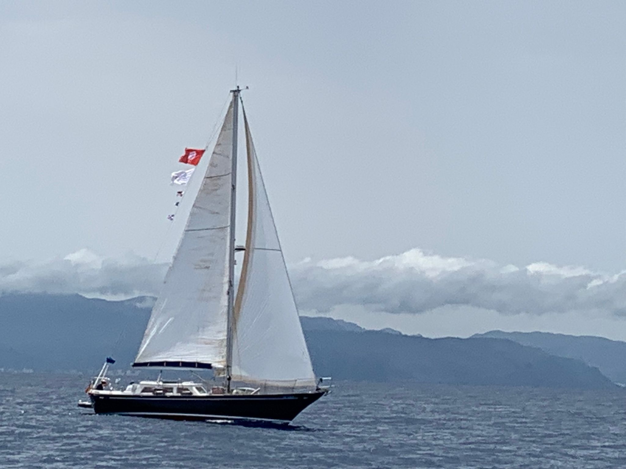 De nuevo con el viento de proa, los veleros realizan sucesivos bordos para progresar hacia La Rápita. Posteriormente el viento rola y permite la navegación directa a vela. El velero TACUAR, con un problema en la vela mayor, regresa a su puerto base. En la imagen de arriba podemos ver el velero «Lady Lola», patroneado por Juan Belliure.