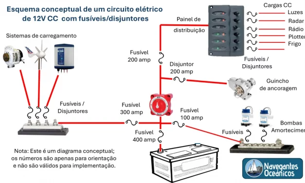 Cablagem do circuito elétrico de um veleiro