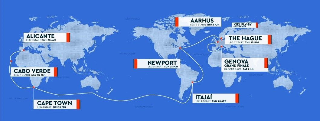 Ruta «The Ocean race 2023». Fuente de la imagen The Ocean Race website.