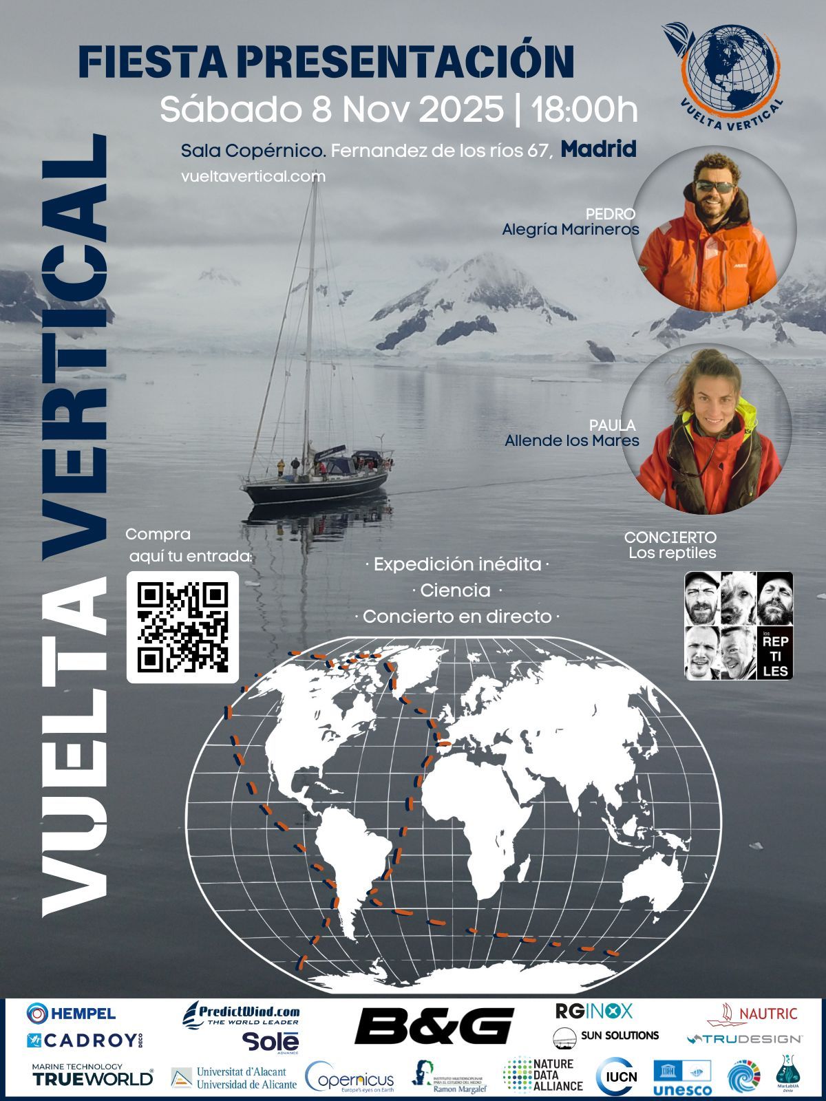 Así que una tarde cualquiera, entre mapas y servilletas garabateadas en un bar, nació Vuelta Vertical: una vuelta al mundo de sur a norte, pasando por la Antártida y el Paso del Noroeste, navegando los 5 océanos y uniendo los 2 círculos polares.