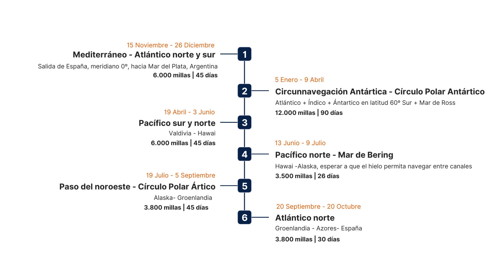 - Regreso a Europa vía Groenlandia y Atlántico Norte (septiembre de 2026 aprox.).